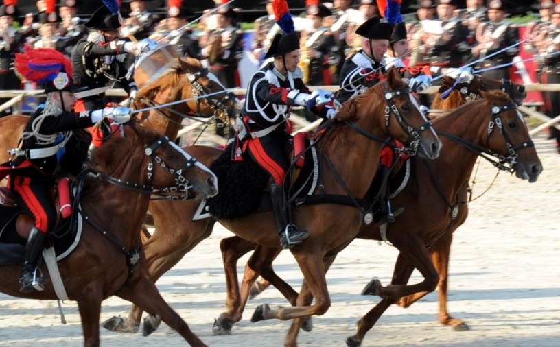 ore 11,00. soddisfatto, Floriano, si consulta – come è doveroso – con Clare, e offre il colpo di scena finale con il trio dei caroselli provenienti direttamente da Piazza di Siena: il Carosello del 4° Reggimento dei Carabinieri senza cavalli (hanno usato anabolizzanti e per questo sono stati tutti squalificati per doping) e il Carosello di Lance dei Lanceri di Montebello (senza le lance, rubate durante la sosta in Autogrill). I guardiesi alla vista del cagnolino che fa da mascotte applaudono increduli: “Ma questo da dove spunta?”.