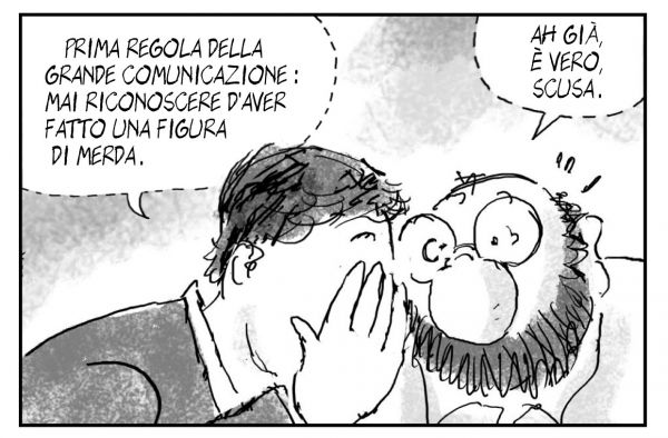 Non contento di aver finora svicolato dalle proprie responsabilità, questo campione di sfacciataggine finisce pure per lamentarsi. Anzi, di più, finisce nel piagnisteo dell’amministratore pubblico senza vita privata. Da quando è entrato in Comune, infatti, ci ha rimesso molto “sul piano economico”. Poveretto, come fate a non capire? Insomma da quando è lì “guadagna meno e vive peggio”. Che tortura. Ma allora perché non cogliere subito la palla al balzo? Perché non dimettersi subito mettendo fine a questa vita di stenti? “Ha pensato di lasciare”, ammette l’inginocchiato prediletto. Ci ha pensato. Ma poi ha deciso di no. Guarda un po’, a volte, la gente com’è masochista. Ama soffrire. Ma mica perché sia attaccato alla poltrona, macché, che cosa vi viene in mente? Lo fa “per spirito di servizio” e perché “gli interessa il progetto”. Si capisce: gli interessa il progetto.