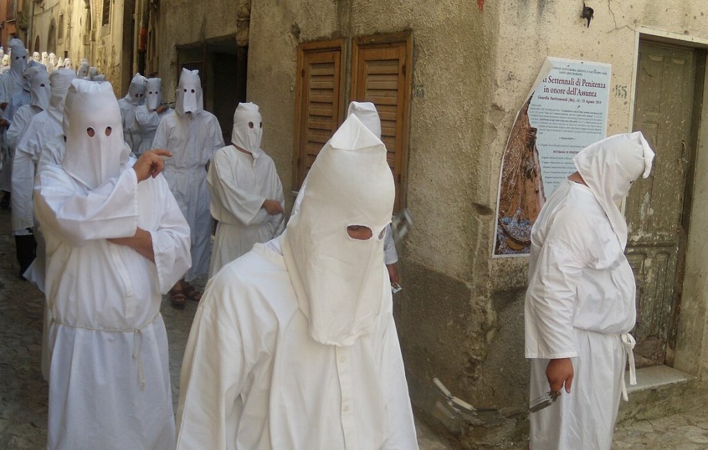 Eccoli! Eccoli! I Battenti di Guardia Sanframondi. Ecco, i Riti settennali di penitenza in onore dell’Assunta. Niente è virtuale, mediato e mediatizzato. Tutto è reale, raccontano gli abitanti. E non è detto che sia del tutto un male.