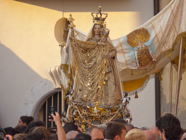 Di sicuro la processione settennale in giro per il paese è il pennino rosso che – come una tappa di un Giro ciclistico d’Italia qualsiasi ripara le buche delle strade – ridà vita a stradine e vicoli deserti, case svuotate dall’emigrazione, luoghi e memorie ormai disabilitate dalla vita contemporanea. Perché è tutto il corpo mistico di Guardia Sanframondi ad essere rianimato, ad essere coinvolto nella celebrazione dei suoi Riti, ogni suo spazio e anfratto, viene coinvolto e ripercorso, letteralmente ri-sacralizzato in ogni sua estensione materiale e simbolica dal percorso che la Processione, la Madonna, i Misteri e il sangue dei Battenti conferma e ripete ogni sette anni.